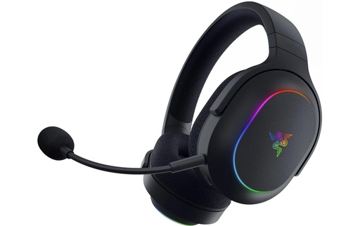 Razer SmartSwitch dual Wireless Basculez rapidement entre Razer HyperSpeed et le BluetoothGrâce à sa capacité à se connecter à la fois à un appareil 2.4 GHz et à un appareil Bluetooth, le SmartSwitch permet de passer simplement de l'un à l'autre, pour un confort inégalé.Les appels provenant d'un appareil Bluetooth connecté passeront automatiquement par le casque, ce qui vous permet de répondre à l'appel puis de revenir au son du jeu sans jamais retirer le casque.Le mode Ne pas déranger peut être activé dans l'application Razer Audio si vous souhaitez bloquer les appels entrants, tandis qu'un bouton dédié sur le casque vous permet de basculer manuellement entre les sources audio HyperSpeed Wireless et Bluetooth.Liberté multiplateforme Grâce aux capacités sans fil 2.4 GHz et Bluetooth, profitez des jeux sur tous vos appareils préférés, qu'il s'agisse d'un PC, d'une PlayStation ou d'un smartphone, et bien plus encore, avec notre casque gaming multiplateforme.6 Zones d'éclairage sur les oreillettes Alimenté par Razer Chroma RGBProfitez de nouveaux effets lumineux RGB époustouflants sur un casque gaming sans fil doté de 6 zones d'éclairage sur les oreillettes. Avec 16.8 millions de couleurs et toute une série d'effets d'éclairage à votre disposition, appliquez vos paramètres préférés et observez leurs effets en toute fluidité dans plus de 300 jeux et 500 appareils, fabriqués par plus de 50 marques partenaires.Conception ergonomique de 285 gUn confort permanent, à l'intérieur comme à l'extérieurConçu pour les marathons de jeu et suffisamment portable pour les déplacements quotidiens, ce casque gaming léger est doté de coussinets d'oreille respirants en mousse à mémoire de forme et d'oreillettes pivotantes pour un ajustement toujours confortable.Haut-parleurs de 40 mm Razer TriForcePerformances audio haut de gammeNotre conception brevetée de haut-parleurs en 3 parties permet de profiter de sons aigus, moyens et graves exceptionnels et précis, offrant ainsi une expérience de jeu en immersion totale et une écoute plus dynamique de la musique et des vidéos.Micro cardioïde Razer HyperClear amovibleCapture vocale claireCe casque sans fil est doté d'un micro amélioré avec une meilleure captation des basses et des hautes fréquences, ce qui donne à votre voix un son plus chaud et naturel. De plus, le micro peut être retiré à tout moment, ce qui rend le casque plus facile à transporter.Caractéristiques Techniques- Réponse en fréquence - 20 Hz - 20 kHz – Impédance - 32 Ω (1 kHz) - Sensibilité - 96 dB SPL/mW à 1 kHz par simulateur de tête et de torse (HATS, Head and Torso Simulator) - Caractéristiques des haut-parleurs - 40 mm – Type de haut-parleur – Razer TriForce – Oreillettes – almohadillas ovaladas – Diamètre intérieur de l'oreillette - 60 mm x 40 mm – Matière des oreillettes – Tissu respirant avec coussinets en mousse à mémoire de forme – Annulation du bruit – Non – Type de connexion – Sans fil 2.4 GHz / Bluetooth – Longueur du câble – Non – Poids approximatif - 285 g / 0.635 lbs – Style de microphone – Micro cardioïde Razer HyperClear amovible – Mode de captation – Unidirectionnel – Réponse en fréquence du microphone - 100 Hz - 10 kHz – Sensibilité du microphone (@ 1 KHZ) - -42 ± 3 dB – Encodage surround virtuel – Son surround 7.1 : disponible uniquement sur Windows 10 64 bits (ou version ultérieure) - Contrôle du volume – Molette de volume – Autres commandes – Bouton marche/arrêt- Bouton de désactivation du micro- Bouton Razer SmartSwitch – Durée de vie de la batterie – Jusqu'à 70 heures (éclairage éteint, connexion 2.4 GHz)- Jusqu'à 35 heures (éclairage allumé, connexion 2.4 GHz) - Éclairage - 6 zones d'éclairage sur les oreillettes – Compatibilité- PC, Mac- PlayStation- Nintendo Switch- Steam Deck- Appareils Mobiles (Android, iOS)