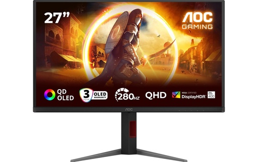 AOC G4 Q27G4SDR, 67.3 cm (26.5"), 2560 x 1440 pixels, Quad HD, QD-OLED, 0.03 ms, Noir, Rouge