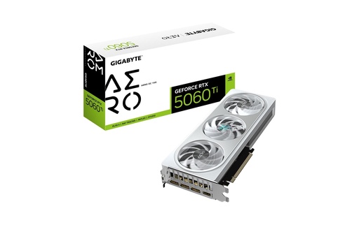 GIGABYTE GeForce RTX 5060 Ti AERO OC 16G Carte Graphique 16 Go GDDR7, 128 bits, PCI-E 5.0, 2647 MHz Fréquence du processeur, 3 x DisplayPort, 1 x HDMI, GV-N506TAERO OC-16GD, GeForce RTX 5060 Ti, 16 Go, GDDR7, 128 bit, 7680 x 4320 pixels, PCI Express x16 5.0