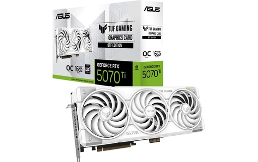 ASUS TUF-RTX5070TI-O16G-BTF-WHITE, GeForce RTX 5070 Ti, 16 Go, GDDR7, 256 bit, 7680 x 4320 pixels, PCI Express 5.0